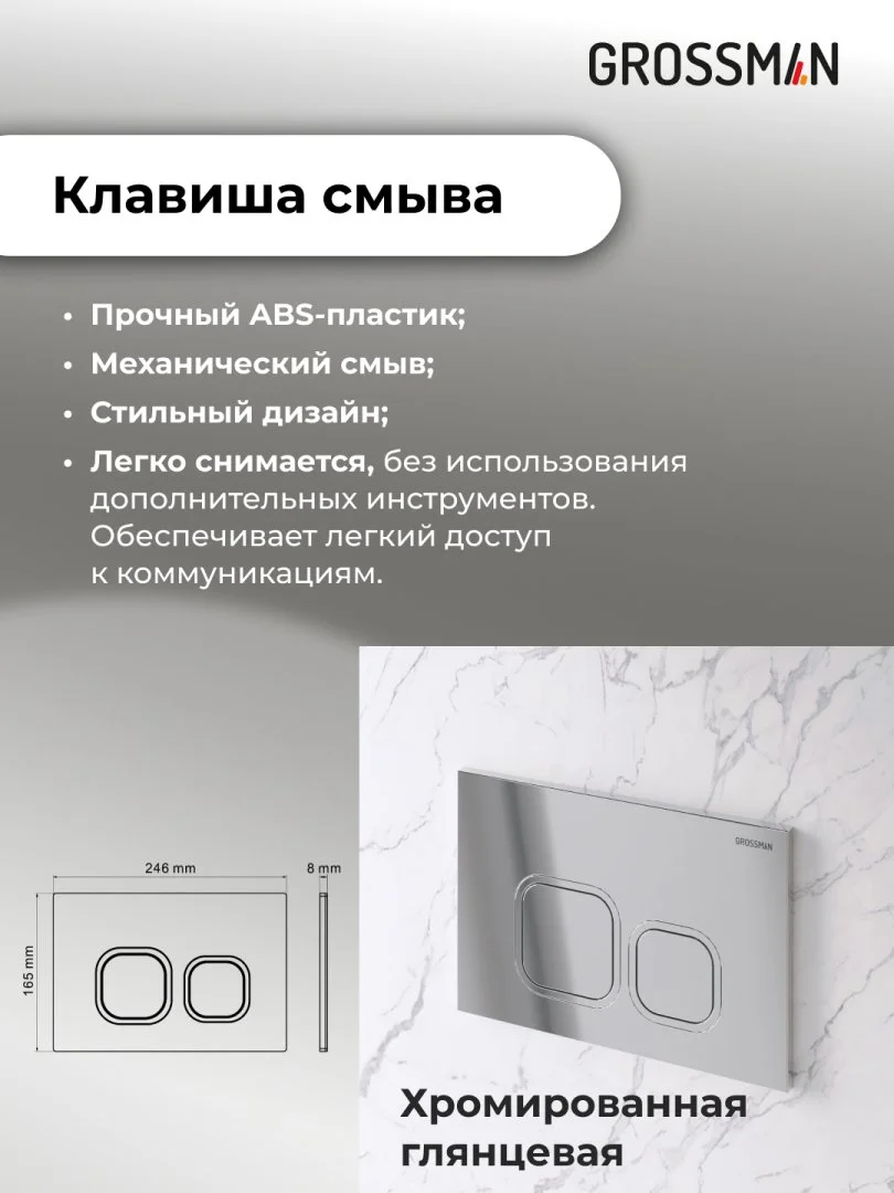Комплект инсталляции GROSSMAN 900.K31.01.000 с клавишей смыва 700.K31.02.100.100 и унитазом GROSSMAN GR-4411S арт.97.4411S.02.100