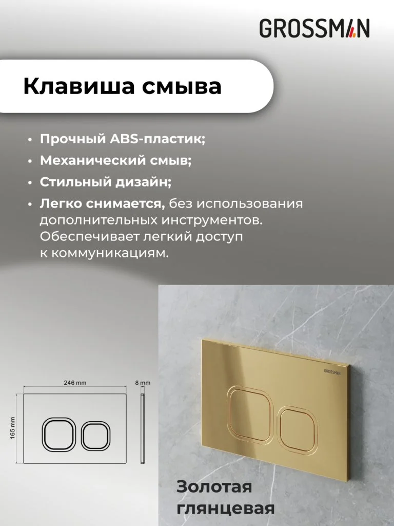 Комплект инсталляции GROSSMAN 900.K31.01.000 с клавишей смыва 700.K31.02.300.300 и унитазом GROSSMAN GR-4411S арт.97.4411S.02.300