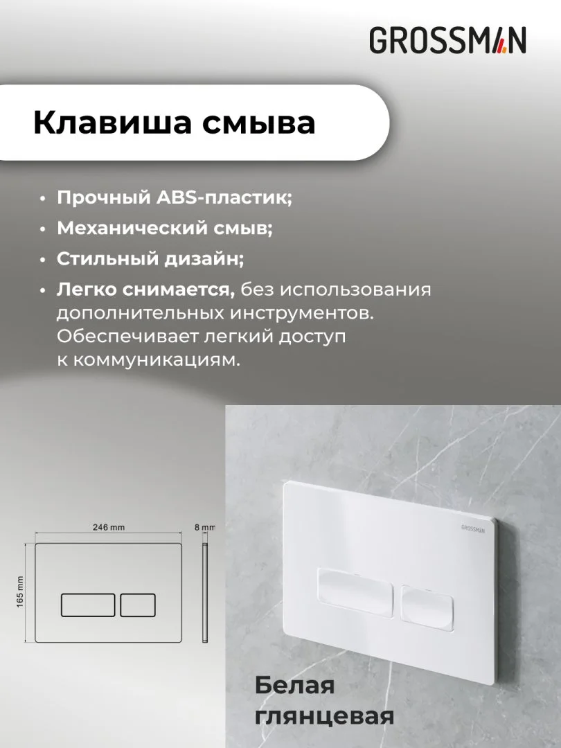 Комплект инсталляции GROSSMAN 900.K31.01.000 с клавишей смыва 700.K31.03.000.000 и унитазом GROSSMAN GR-4411S арт.97.4411S.03.000