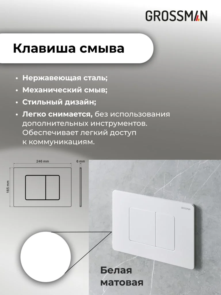 Комплект инсталляции GROSSMAN 900.K31.01.000 с клавишей смыва 700.K31.04.01M.01M и унитазом GROSSMAN GR-4411S арт.97.4411S.04.01M