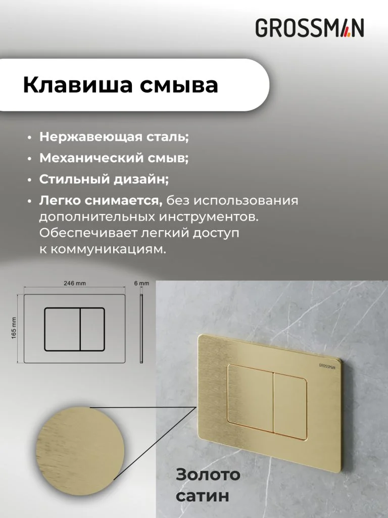 Комплект инсталляции GROSSMAN 900.K31.01.000 с клавишей смыва 700.K31.04.32M.32M и унитазом GROSSMAN GR-4455S арт.97.4455S.04.32M