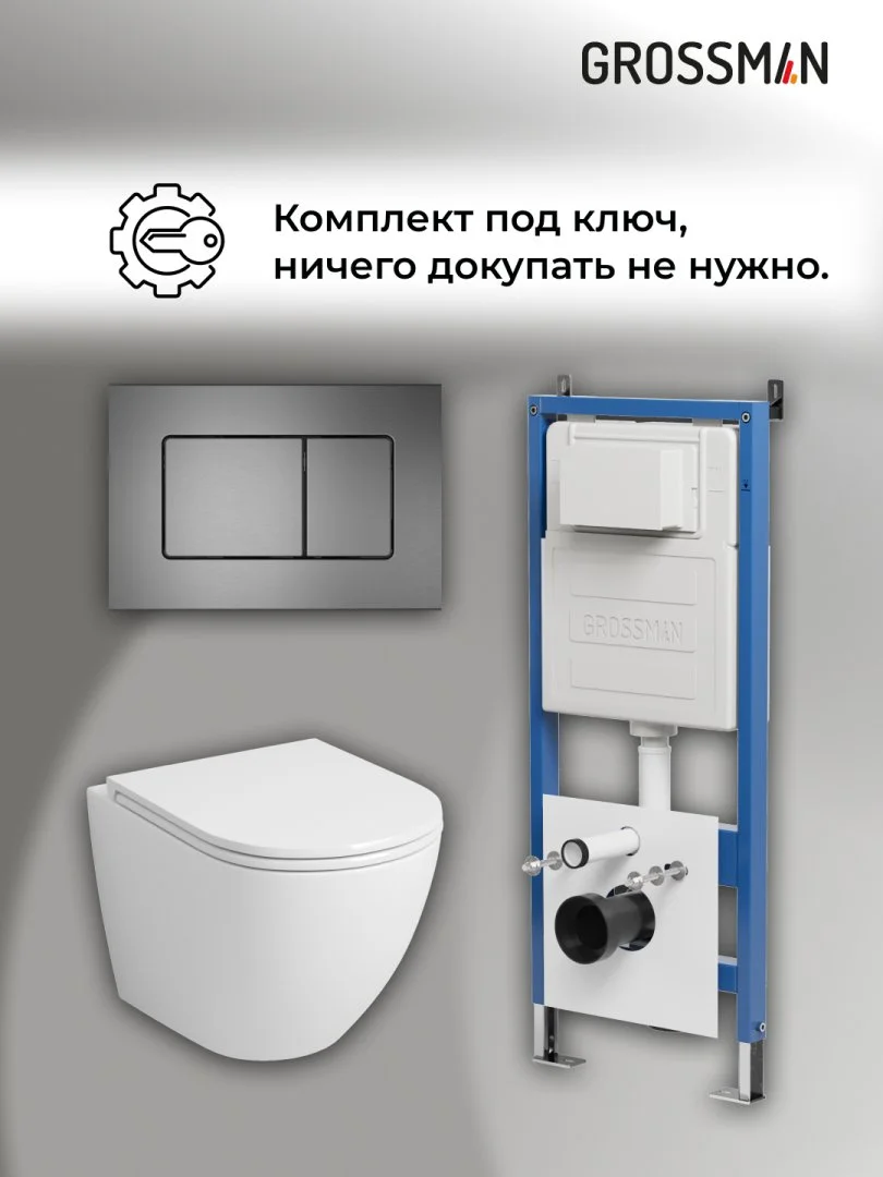 Комплект инсталляции GROSSMAN 900.K31.01.000 с клавишей смыва 700.K31.04.42M.42M и унитазом GROSSMAN GR-4455S арт.97.4455S.04.42M