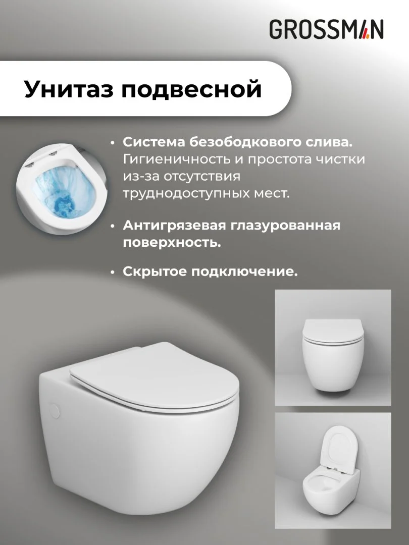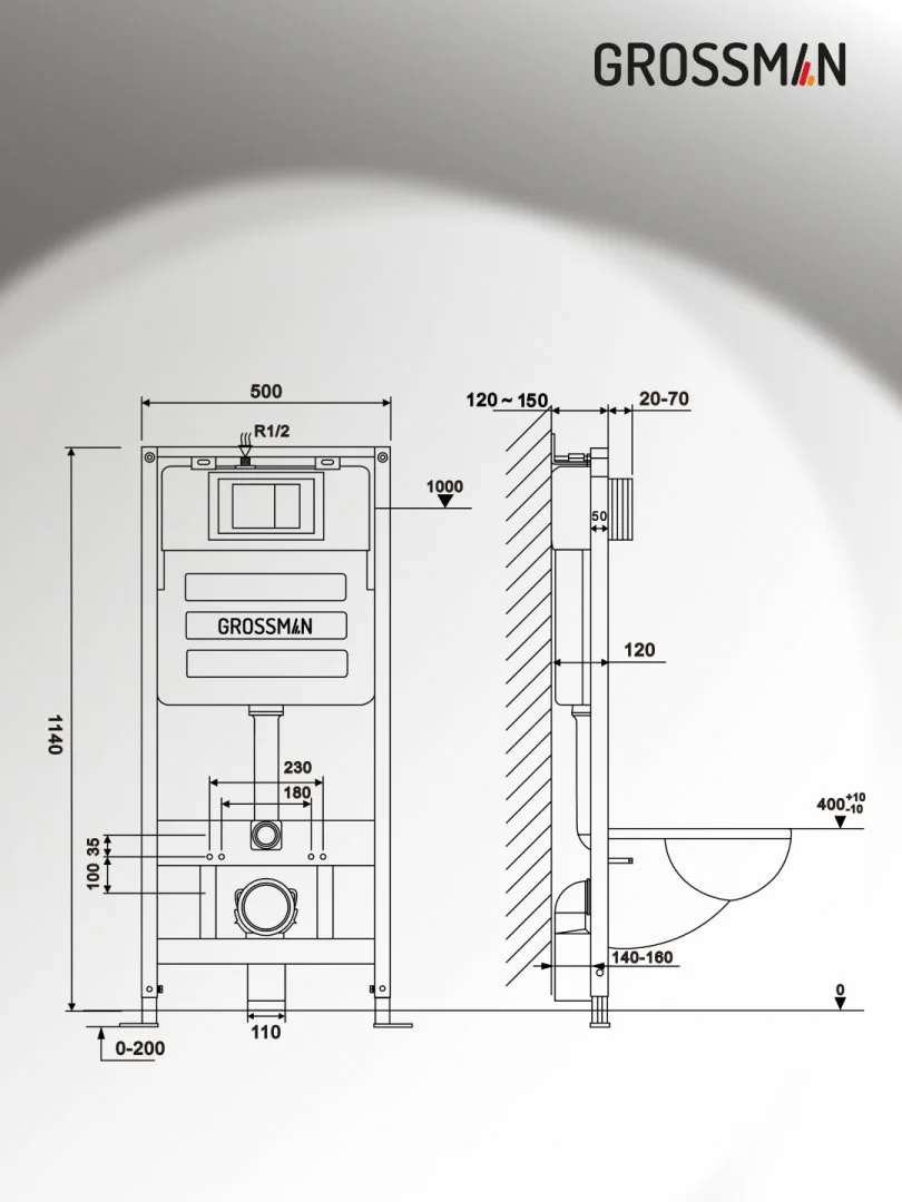 Комплект унитаза GROSSMAN с инсталляцией 900.K31.01.000 клавишей смыва 700.K31.05.10M.10M унитаз GR-