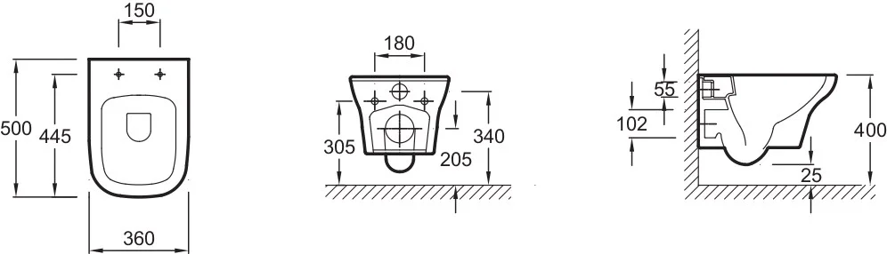 • Подвесной унитаз Jacob Delafon Vox EDM102-00 с безободковой конструкцией Rimless.