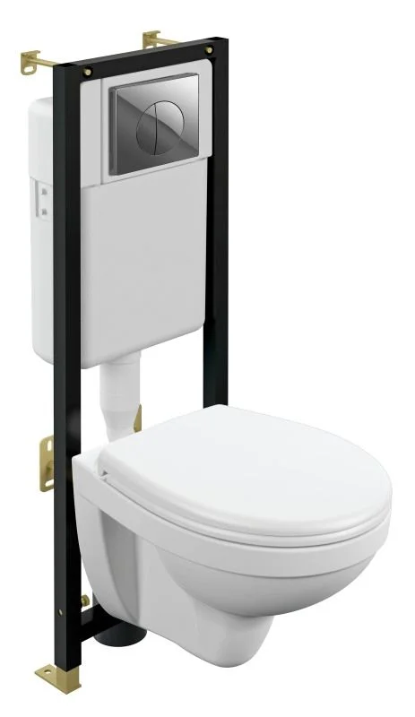 Комплект унитаза Cersanit DELFI (SET-DEL/Black/TPL/Cg-w) TPL инсталляции и клавиши смыва LEON пластик хром S-SET-DEL/Black/TPL/Cg-w