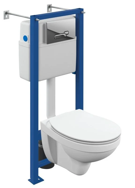 Инсталляция VECTOR с подвесным унитазом DELFI с ультратонким антибактериальным сиденьем из дюропласта с функцией плавного закрывания и легкосъемом, и кнопкой смыва ACTIS