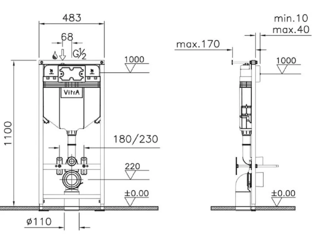 Комплект унитаза с инсталляцией Vitra Spinflush Uno 9842B003-7206 сиденье микролифт, клавиша смыва х