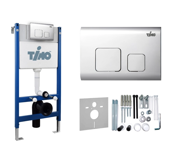Комплект унитаза Timo INARI TWC-01+FP-002+TK-503 белый с инсталляцией, клавишей смыва SOLI хромированная с шумоизоляцией и креплениями