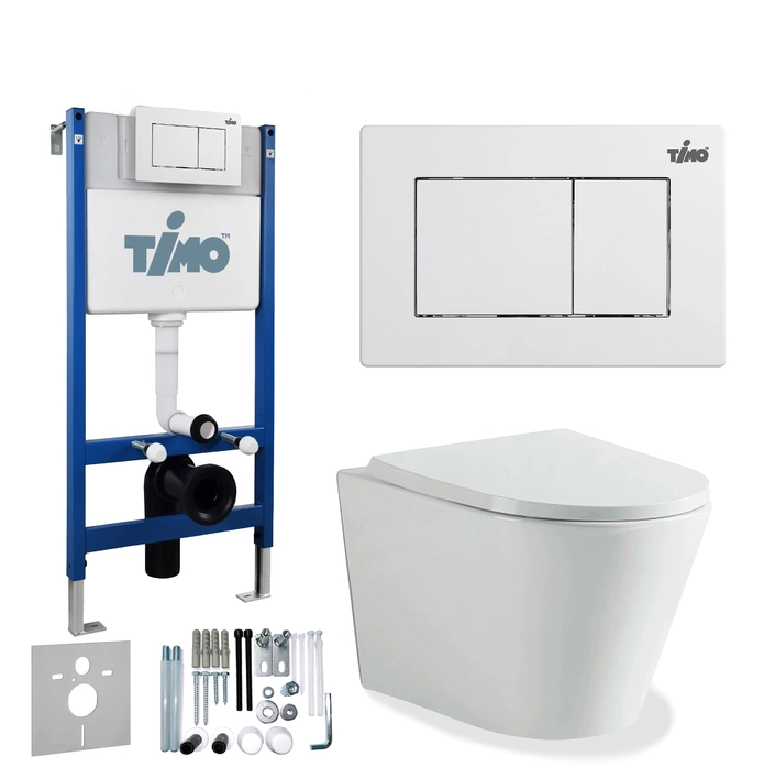Комплект унитаза Timo INARI TWC-01+FP-004W+TK-503 белый с инсталляцией, клавишей смыва REKO белая с шумоизоляцией и креплениями