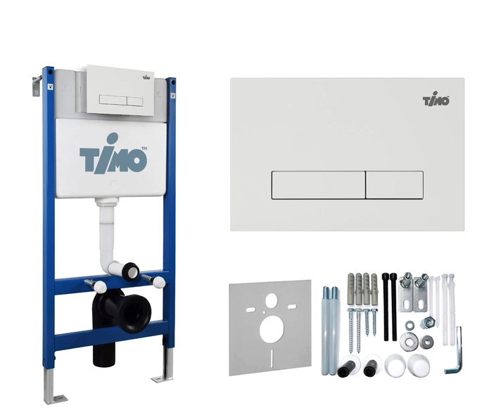 Комплект унитаза Timo KULO TWC-01+FP-003W+TK-403 белый с инсталляцией, клавишей смыва INARI белая с шумоизоляцией и креплениями