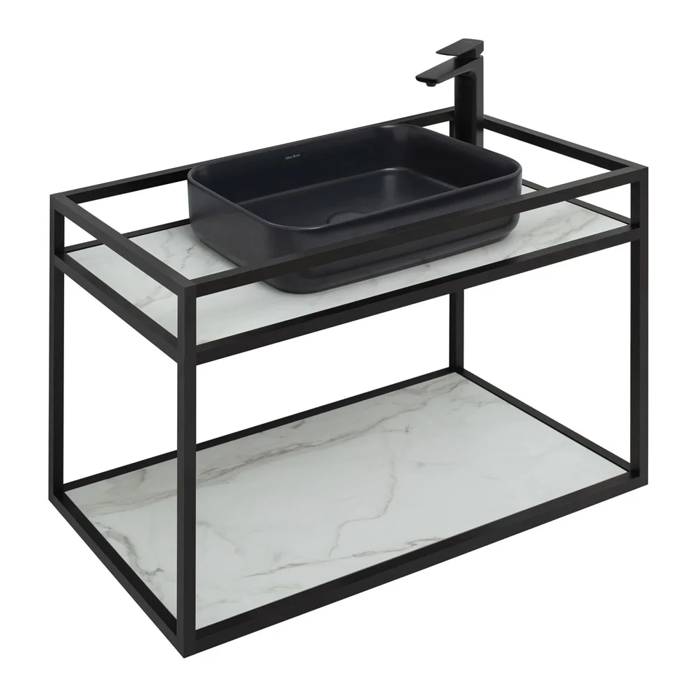Стильные каркасы тумб и пеналов выполнены из металла, имеют брашированную поверхность