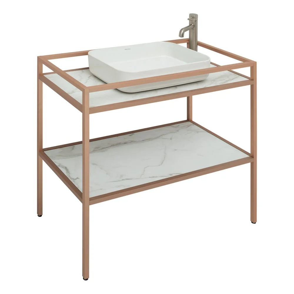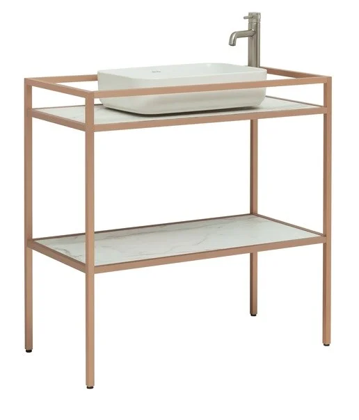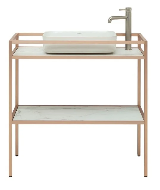 Стильные каркасы тумб и пеналов выполнены из металла, имеют брашированную поверхность