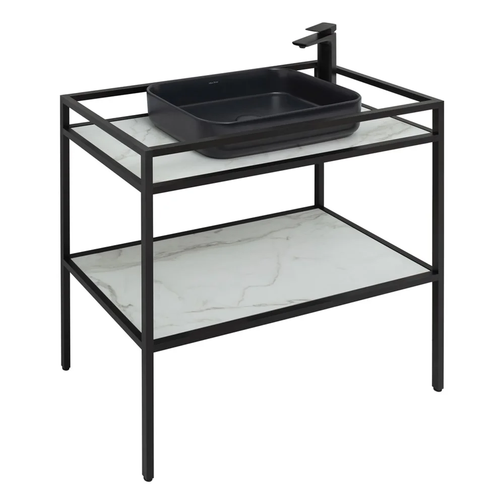 Стильные каркасы тумб и пеналов выполнены из металла, имеют брашированную поверхность