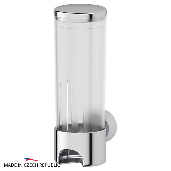 Очень часто в ванных комнатах для косметических дисков, так необходимых женщинам, не находится подходящего места. Представленный в коллекциях контейнер дает возможность их гигиенического хранения и создает удобство в использовании. Полупрозрачный корпус позволяет наблюдать расход дисков с целью своевременного пополнения контейнера. Косметические диски изымаются из контейнера легким движением пальцев. Закладка дисков происходит через верхнее отверстие при снятой крышке. Все элементы контейнера изготовлены из прочного качественного пластика, частично покрытого специальным стойким хромом. Белый матовый корпус контейнера гармонирует с матовым стеклом предметов коллекций. При необходимости чистки контейнера его свободно можно отделить от настенного держателя. Далеко не у всех производителей аксессуаров в сериях присутствует подобный предмет, который вносит индивидуальность и выгодно дополняет коллекцию.