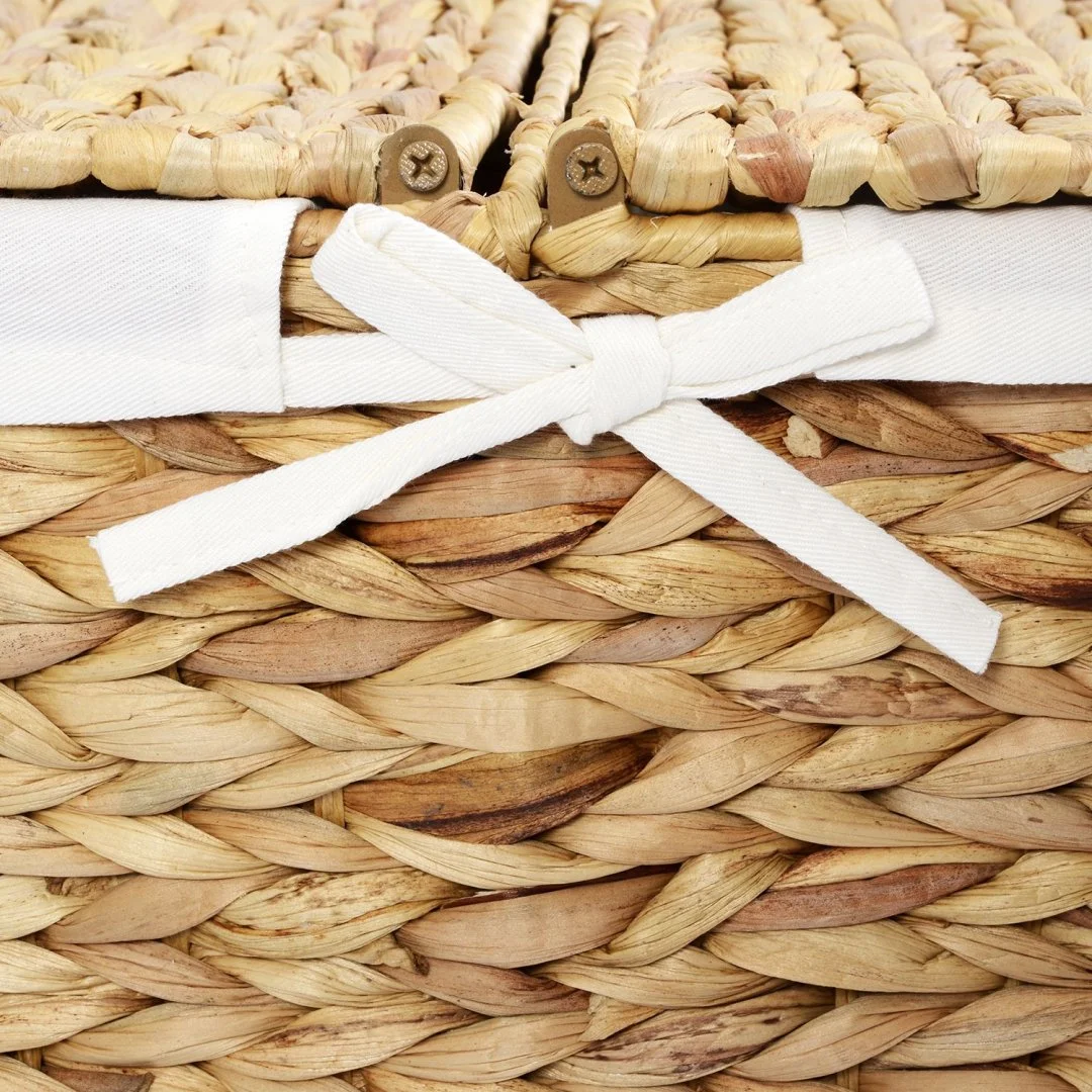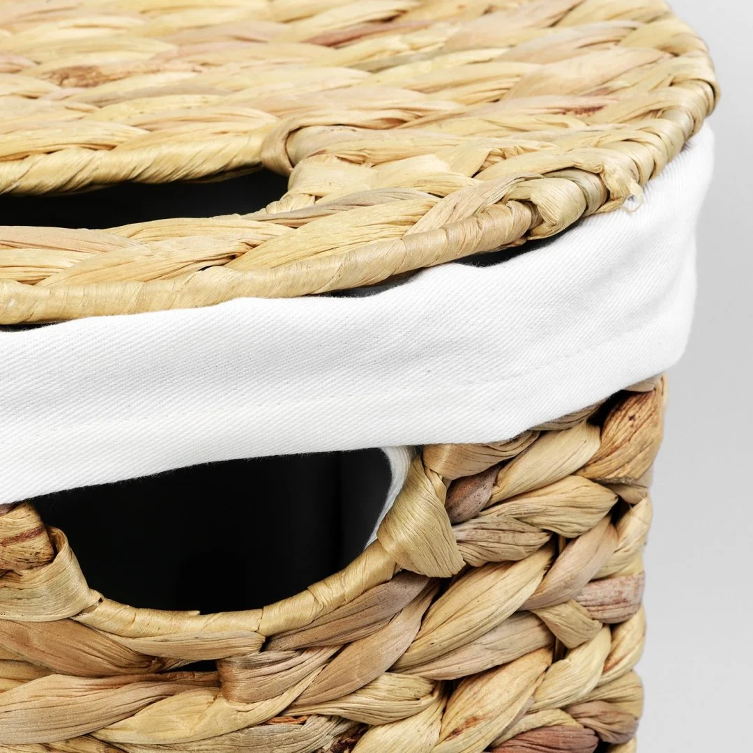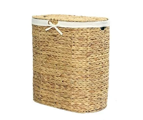 Назначение: Корзина для белья. Материал: Водный гиацинт, текстиль. Покрытие: Водоотталкивающее покрытие. Описание: Размер: 58 х 33 х 58 см* Съемный чехол можно стирать в машинке при температуре не выше 60 градусов.