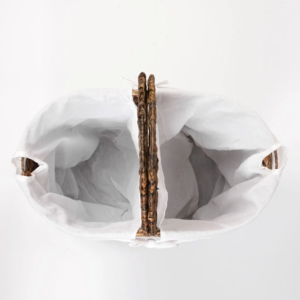 Назначение: Корзина для белья. Материал: Водный гиацинт, текстиль. Покрытие: Водоотталкивающее покрытие. Описание: Размер: 58 х 33 х 58 см* Съемный чехол можно стирать в машинке при температуре не выше 60 градусов.