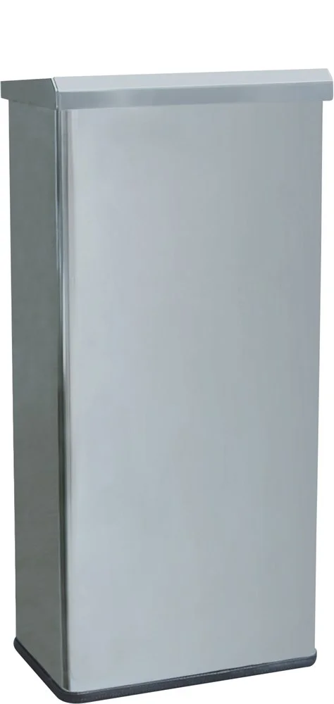 Контейнер для мусора из нержавеющей стали AISI 430 прямоугольное. Пластиковая основа, изоляция влаги. Без наклона верхней части контейнера.