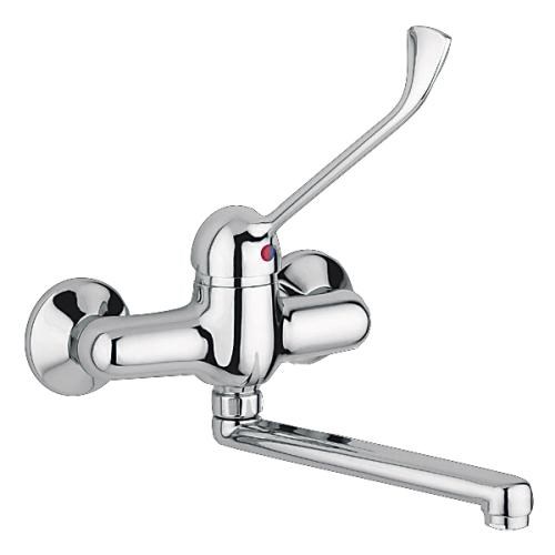 Смеситель настенный управляется одним рычагом.