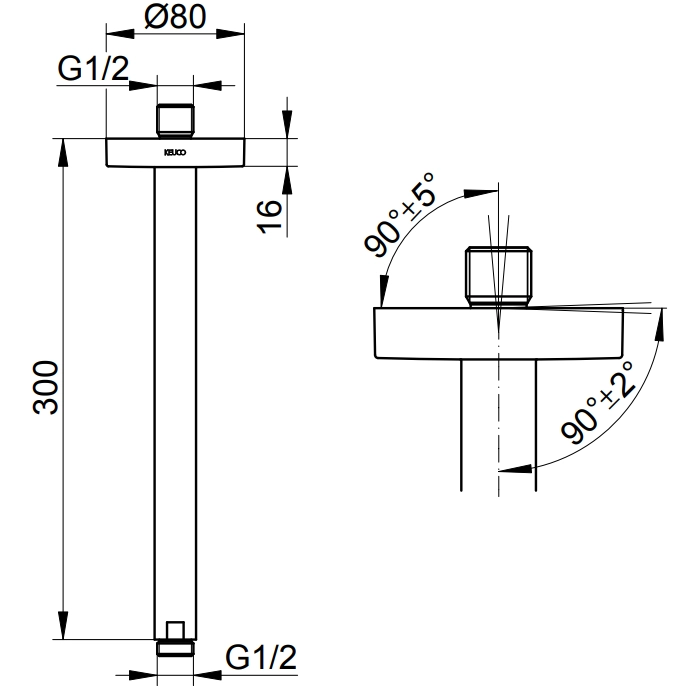 Кронштейн верхнего душа Keuco 51689050300, 300 мм