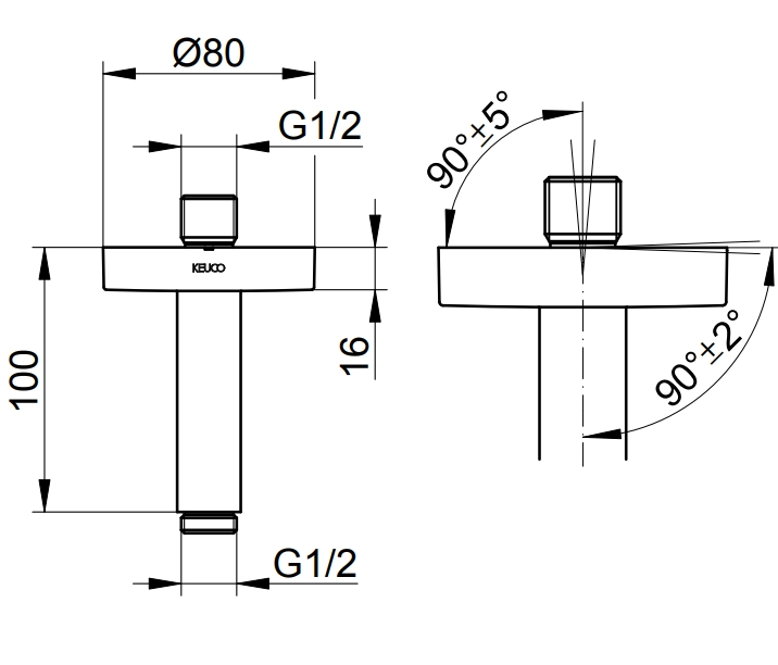 Кронштейн верхнего душа Keuco 51689070100, 100 мм
