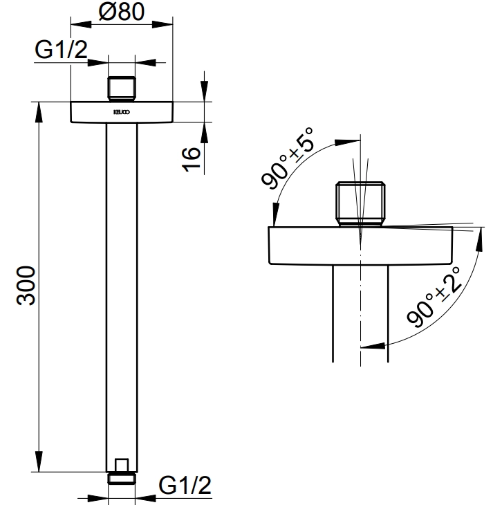Кронштейн верхнего душа Keuco 51689130300, 300 мм