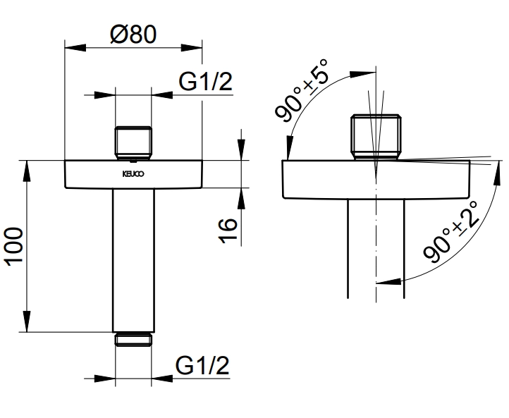 Кронштейн верхнего душа Keuco 51689170100, 100 мм