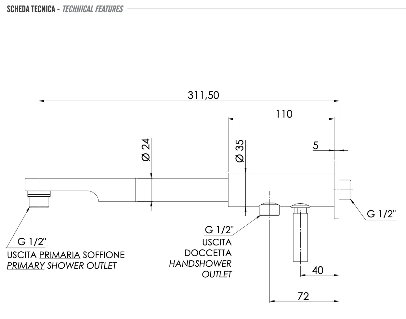 Кронштейн верхнего душа Remer N348N30ND c дивертером 30 см