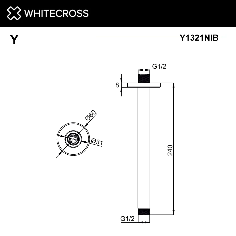 Кронштейн верхнего душа WHITECROSS Y1321NIB брашированный никель