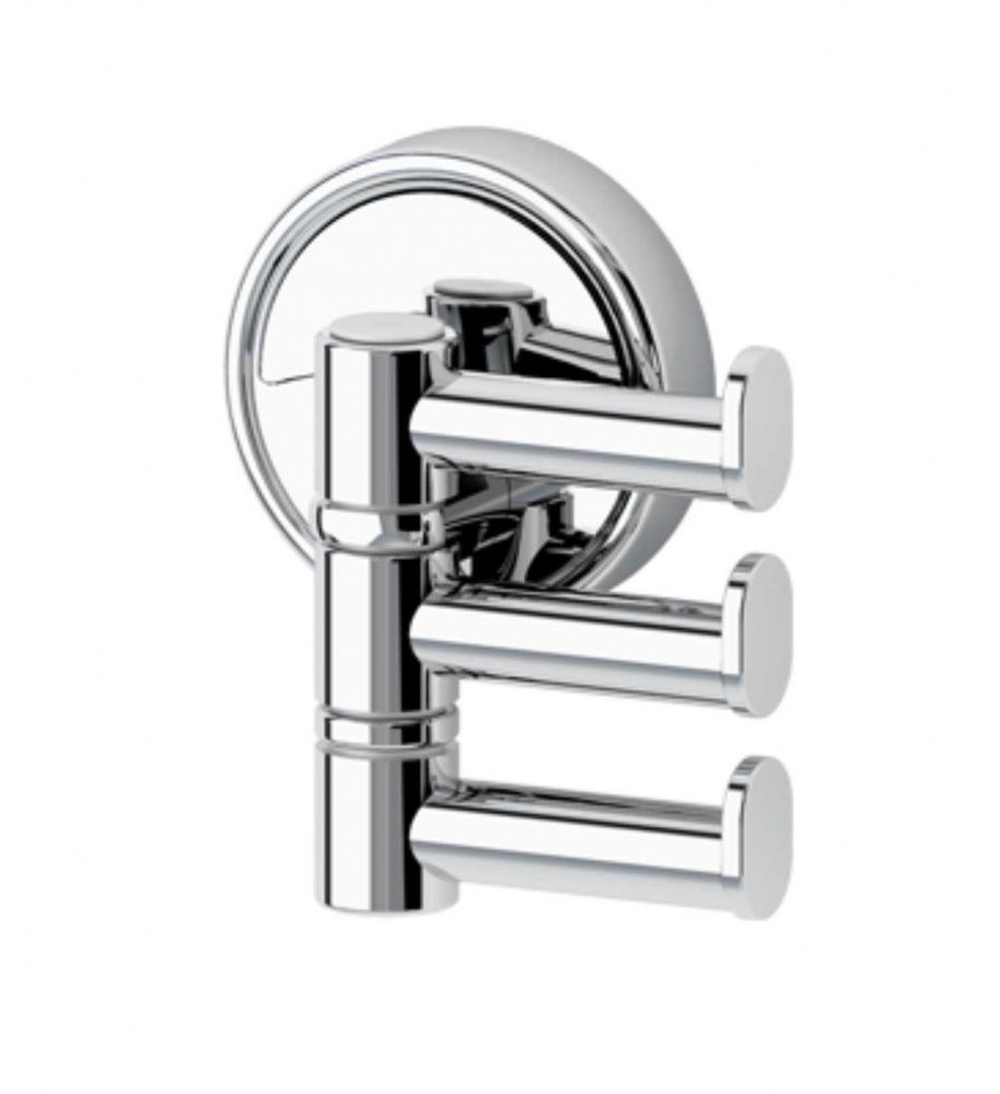 Каждая коллекция насчитывает четыре вида поворотных держателей полотенец. Основное различие заключается в количестве элементов для навески: два, три и четыре. Модель с четырьмя элементами крепится к стене двумя держателями, что обеспечивает конструкции дополнительную надежность. Соединительная часть вращающихся элементов зафиксирована не резьбовым соединением, а клепаным, за счет чего конструкция не разбалтывается и имеет длительный срок службы.Удобство в использовании этих позиций состоит в том, что элементы перемещаются в плоскости и занимают небольшое пространство в сложенном состоянии. При вращении элементов, благодаря пластиковым шайбам, исключается неприятный скрип. Конструкция позиций достаточно прочная, однако длинный рычаг (35 см) не позволяет давать большой нагрузки. Рекомендуется использовать в целях просушки полотенца для рук и лица. Ограничители на концах элементов не дают соскальзывать полотенцам и фиксируют их на де