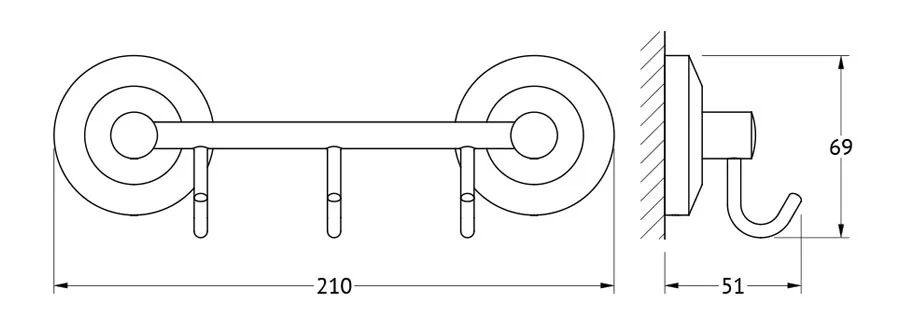 В коллекциях насчитывается по пять видов держателей с крючками, имеющих от трех до семи элементов. Преимущество этих позиций состоит в том, что покупатель имеет возможность выбрать для себя модель с необходимым количеством элементов, что предполагает минимальное сверление отверстий под крепеж. Планка, предназначенная для крепления крючков, выполнена из цельного латунного стержня для дополнительной прочности. Расстояния между крючками оптимальны для того, чтобы разместить различные предметы. Форма крючка позволяет размещать на них полотенца без петель, халаты и предметы личной гигиены. Еще одно преимущество держателей с крючками – двойное крепление к стене, обеспечивающее дополнительную прочность. Данные аксессуары надежно зарекомендовали себя в ванных комнатах больших семей.
