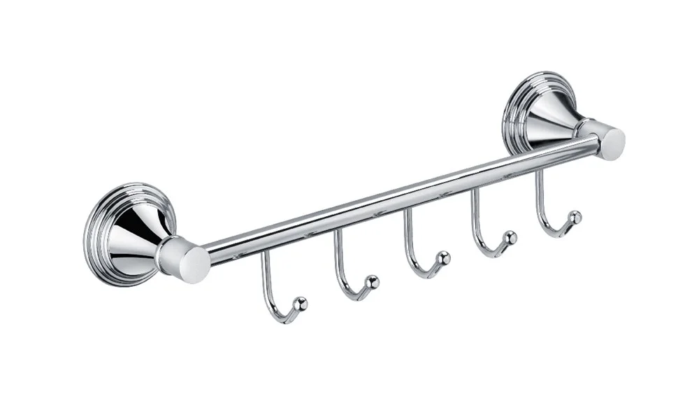 Настенная планка с 5-ю крючками для банных халатов и полотенец. Материал - хромированная латунь.
