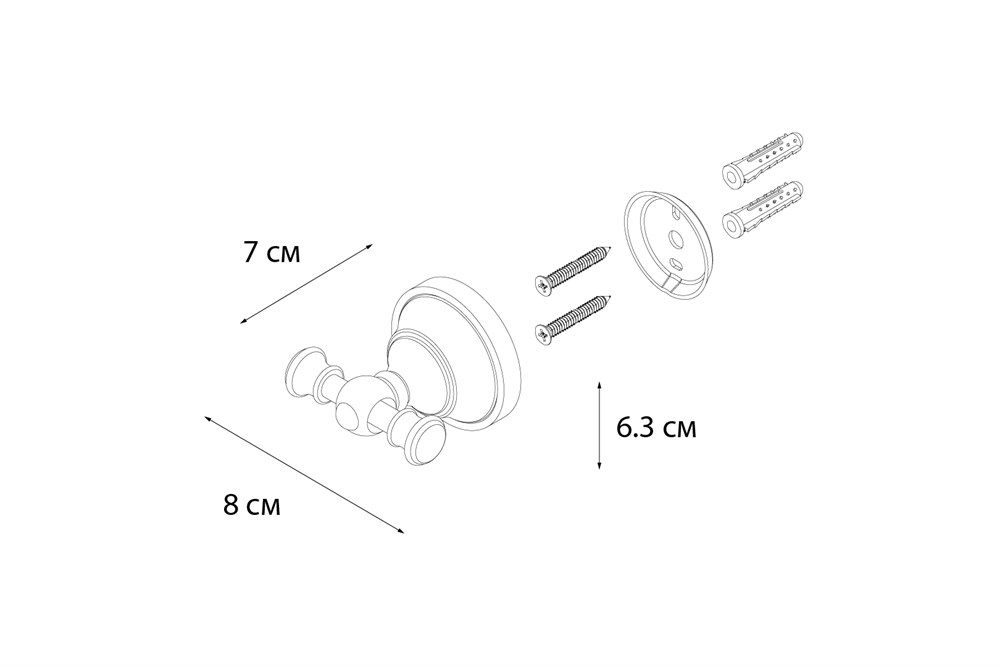 Двойной крючок для полотенец и банных халатов. Материал - хромированная латунь.