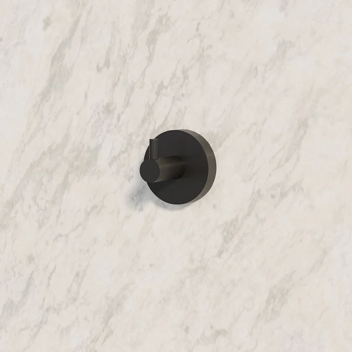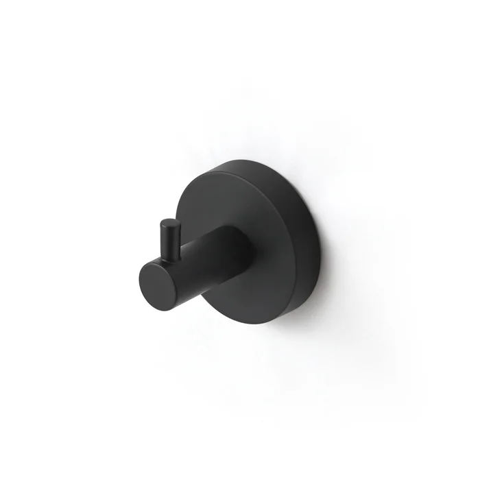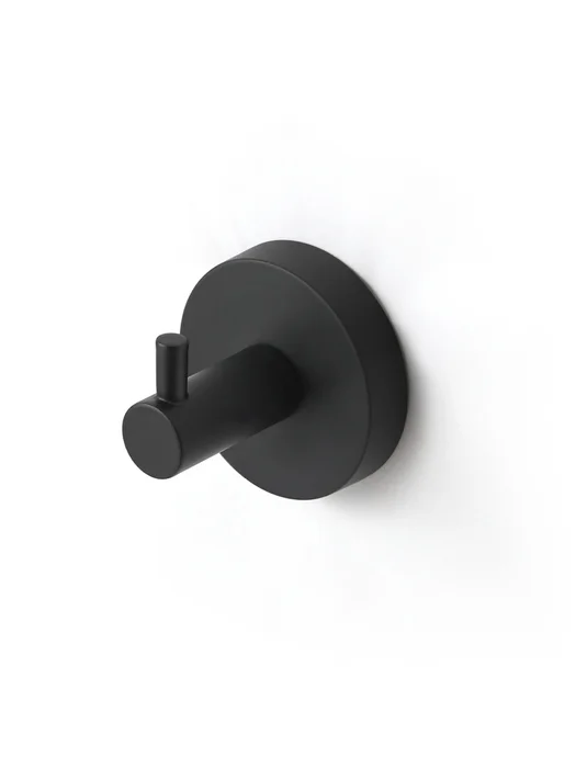 Одинарный крючок Sena черного матового цвета – доступное функциональное решение для современной ванной комнаты. У крючка продуманная геометрия и форма, что позволяет удобно повесить и большое полотенце, и банный халат.