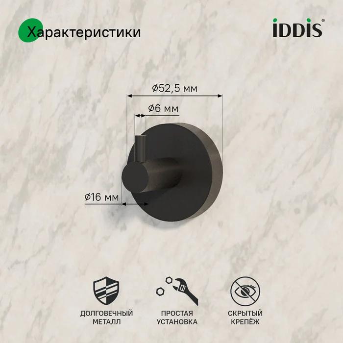Крючок удобен в установке, монтаж не требует профессиональных навыков. Крепежные элементы скрыты корпусом, что обеспечивает привлекательный и аккуратный внешний вид. Крепеж выдерживает вес до 5 кг.
