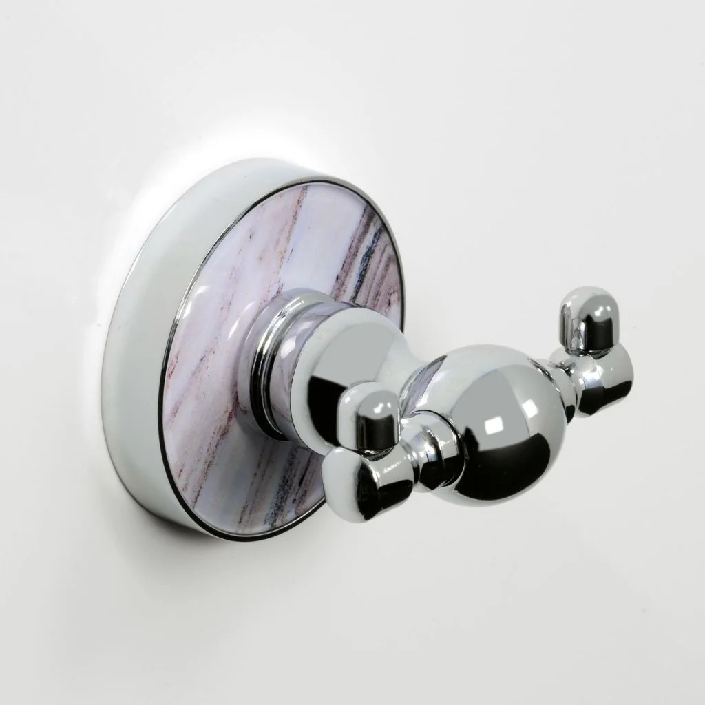 Мрамор сам по себе очень красивый и благородный материал. Коллаборация мраморной текстуры и глянцевого хромоникелевого покрытия дало интересный результат: коллекцию аксессуаров Aland K-8500. Изделия этой серии органично дополнят интерьер ванной комнаты с мраморной отделкой или с любой другой плиткой, схожей по оттенкам.