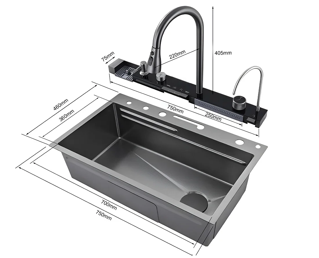 Кухонная мойка Ceruttispa GLORIA Pro CT10578 nano black серая из нержавеющей стали 750х460х230