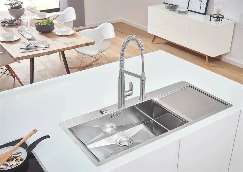 Мойка Grohe K1000 из нержавеющей стали с корзинчатым вентилем, левая/правая