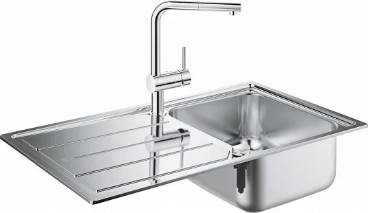 Кухонная мойка Grohe K500 из нержавеющей стали с корзинчатым вентилем, 31571SD0 и смеситель Grohe Mi