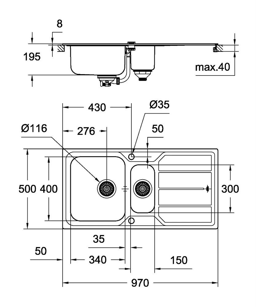 Пространство, которое необходимо для выполнения задач на кухне в сочетании с полезными функциями. Мойка GROHE K500 из нержавеющей стали имеет два подготовленных отверстия для смесителя, что делает ее полностью оборачиваемой. Мойка предлагает большое внутреннее пространство, а глубина чаши составляет 19.5 см, что означает, что вы с легкостью сможете наполнять даже большие емкости. Мойка оснащена рядом умных характеристик: например, изоляция GROHE Whisper на нижней части мойки уменьшает шум, а автоматический мусоросборник с дистанционным управлением подразумевает, что вы можете вытащить пробку, не опуская свою руку в грязную воду. Мойка изготовлена из нержавеющей стали AISI 304, а само покрытие является матовым, что делает поверхность менее пористой и гарантирует более простое очищение мойки. Благодаря системе быстрого монтажа GROHE QuickFix установка мойки не займет много времени и не потребует дополнительного о