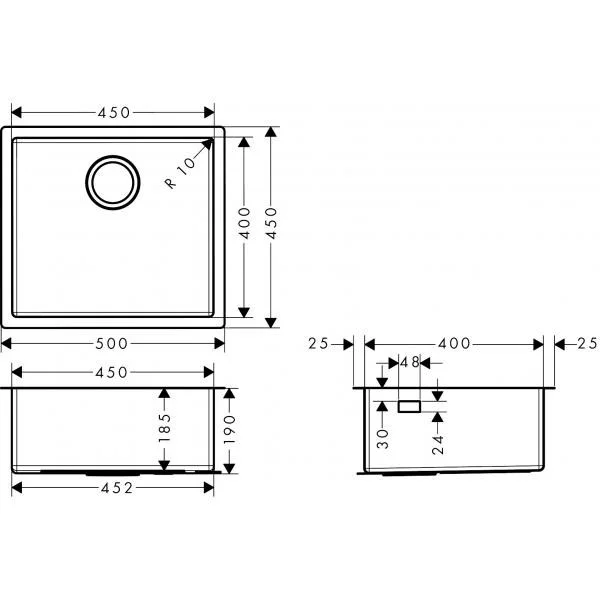 Кухонная мойка hansgrohe S71 S719-U450, нержавеющая сталь 43426800