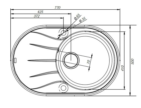 Комплектация: сифон, выпуск 3½”, клапан-автомат, крепления, шаблон выреза 740 х 470 мм; Материал: Granucryl; Цвет: черный; Размер мойки: 770х500 мм; Ширина шкафа: от 50 см; Размер чаши: 410 мм; Глубина чаши: 210 мм