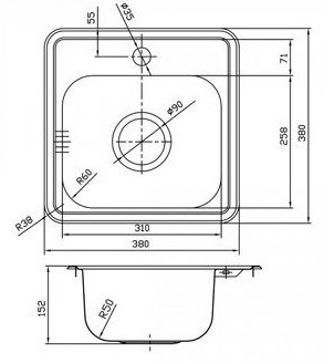 Кухонная мойка IDDIS Strit (STR38S0i77) из нержавеющей стали