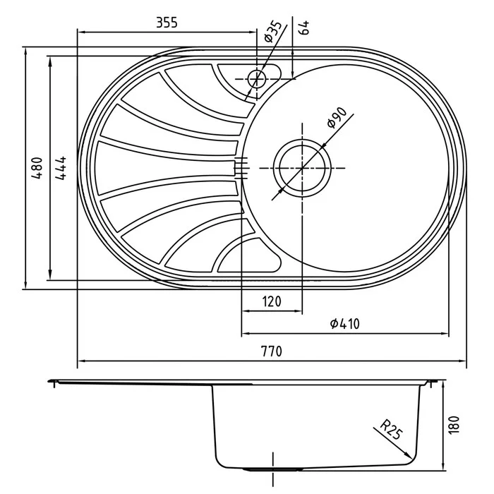 - Материал: нержавеющая сталь 304, толщина: 0,8 мм.
