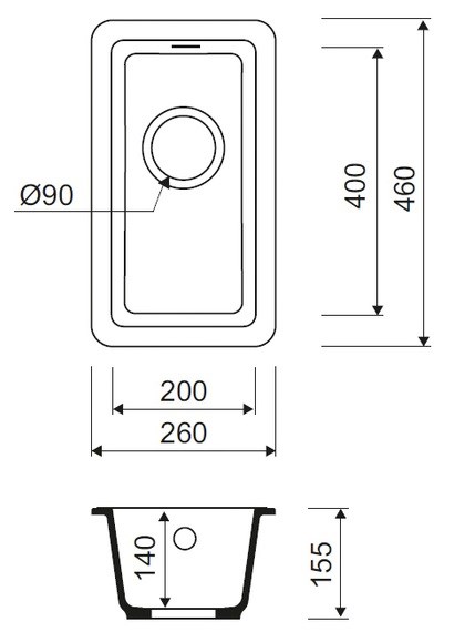 Комплектация: сифон, выпуск 3½”, клапан-автомат, крепления, шаблон выреза; Материал: Granucryl; Цвет: песок; Размер мойки: 260х460 мм; Ширина шкафа: от 40 см. Размер чаши: 200х400 мм; Глубина чаши: 140 мм