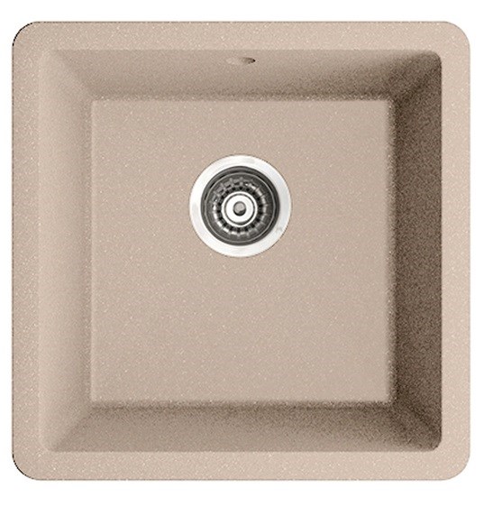 Комплектация: сифон, выпуск 3½”, клапан-автомат, крепления, шаблон выреза; Материал: Granucryl; Цвет: песок; Размер мойки: 460х460 мм; Ширина шкафа: от 50 см. Размер чаши: 400х400 мм; Глубина чаши: 200 мм
