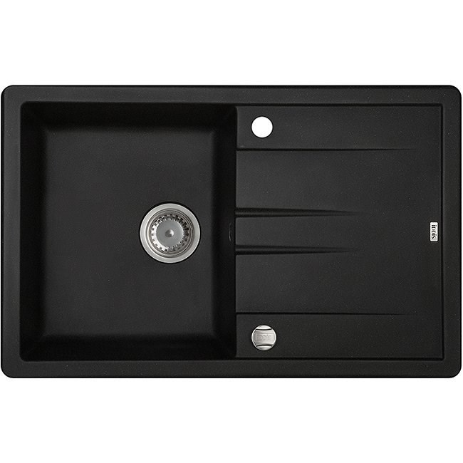 Комплектация: сифон, выпуск 3½”, клапан-автомат, крепления, шаблон выреза 758 х 478 мм; Материал: Granucryl; Цвет: черный; Размер мойки: 780x500 мм; Ширина шкафа: от 50 см; Размер чаши: 360х430 мм; Глубина чаши: 210 мм