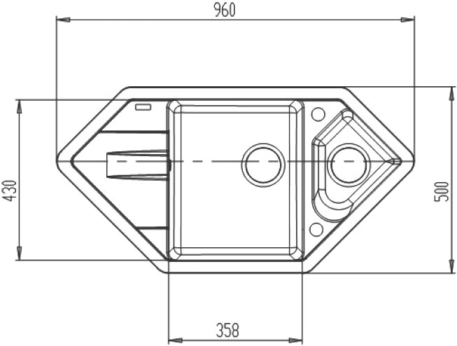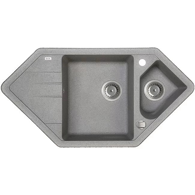 Комплектация: сифон, выпуск 3½”, клапан-автомат, крепления, шаблон выреза 934 х 478 мм; Материал: Granucryl; Цвет: серый; Размер мойки: угловая мойка. 960х500 мм; Ширина шкафа: от 75 см; Размер чаши: 360х430 мм, 255х205 мм; Глубина чаши: 210 мм, 165 мм