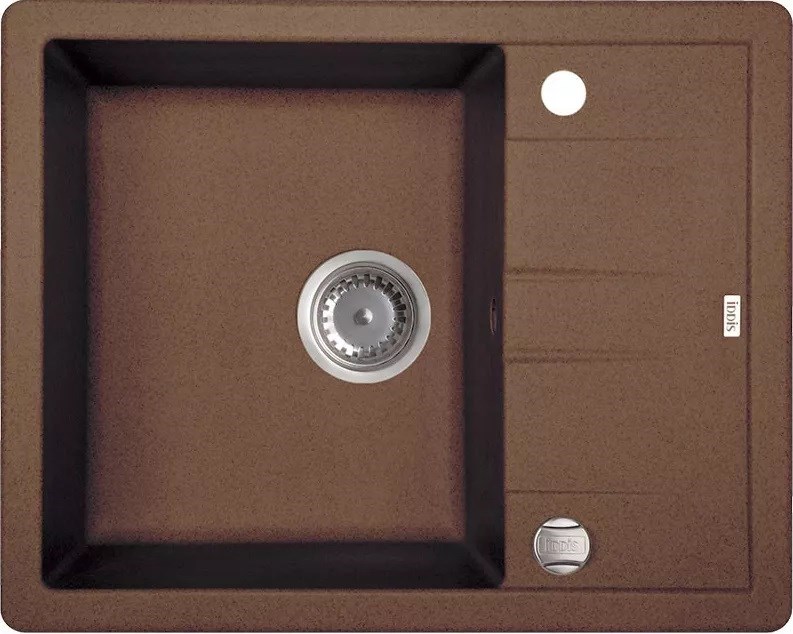 Комплектация: сифон, выпуск 3½”,клапан- автомат, крепления, шаблон выреза 598 х 478 мм; Материал: Granucryl; Цвет: шоколад; Размер мойки: 620x500 мм; Ширина шкафа: от 50 см; Размер чаши: 360х430 мм; Глубина чаши: 210 мм