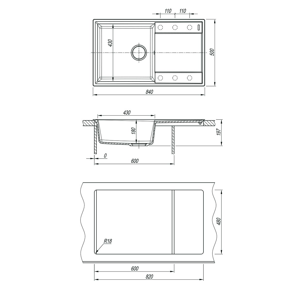- Глубина чаши: 180 мм