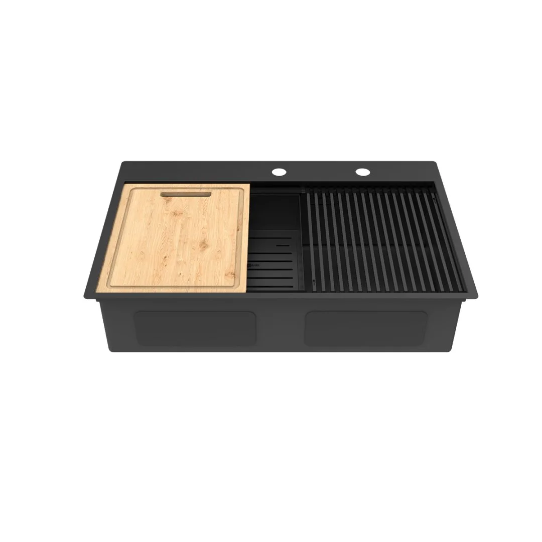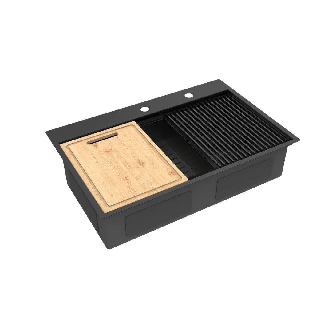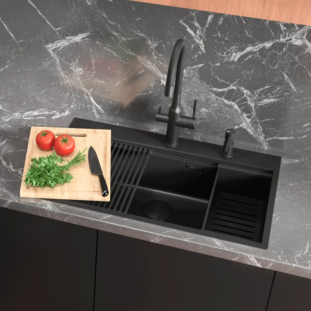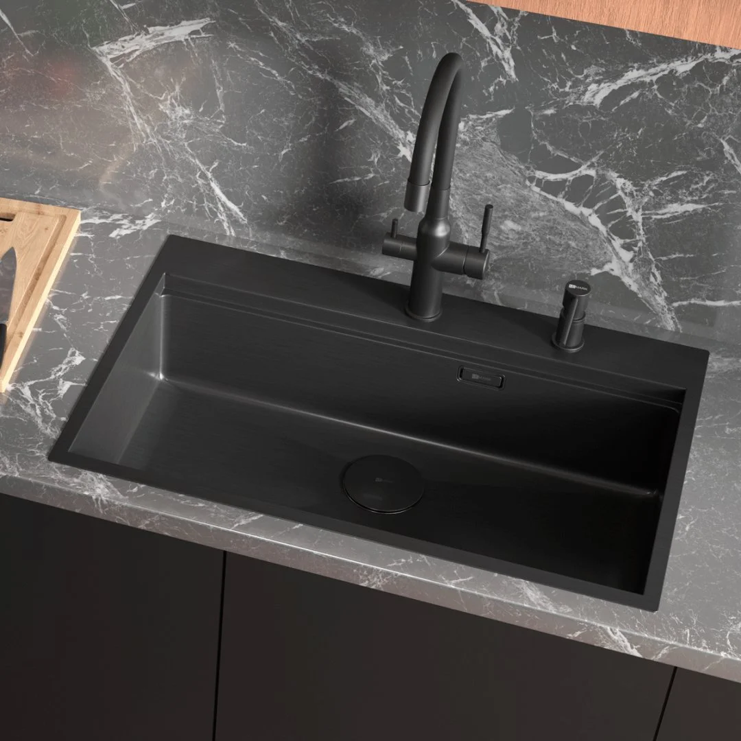 Кухонная мойка Lemark IORDANA 780 из нержавеющей стали с аксессуарами в комплекте: ролл-мат, коландер, разделочная доска, черный матовый 9932120